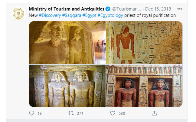 (الصورة من الحساب الرسمي لوزارة السياحة والآثار في مصر على تويتر)