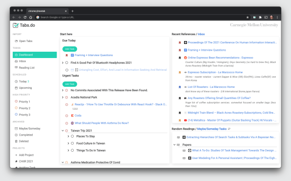 تتعقب Skeema جميع ألسنة التبويب المفتوحة لديك، وتتيح لك إسنادها في “خزان معزول” فضفاض أو تجميعها في مهام محددة (مهام يمكنك حتى ربطها بتاريخ ووقت للوفاء بالمواعيد النهائية).