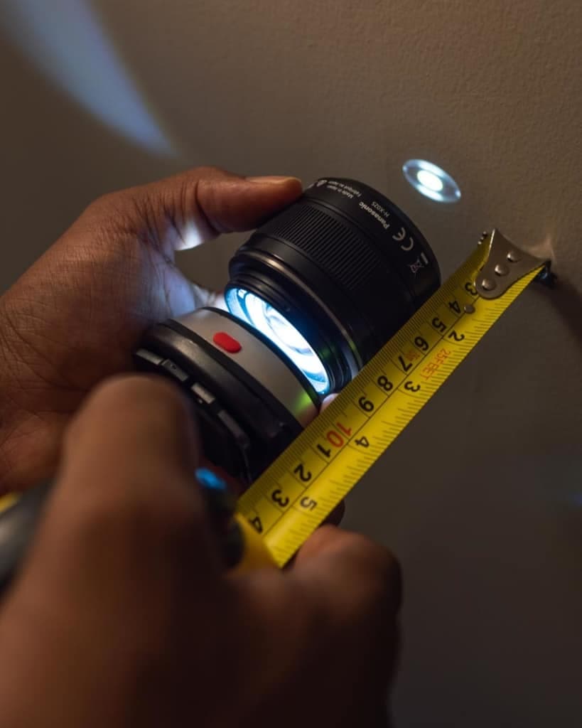 أغلق أضواء الغرفة وأحضر الكشاف وثبته على منضدة بحيث يكون الضوء موجه للحائط أو إلى ورقة على مسافة متوسطة، ضع إحدى العدسات على طول المسافة بين الكشاف والحائط وابدأ بتحريكها على هذا الخط إلى الأمام والخلف حتى تحصل على أوضح صورة لضوء الكشاف على الحائط أو الورقة، استخدم شريط القياس أو المسطرة في قياس المسافة بين الحائط والعدسة وستكون هي البعد البؤري، لها وكرر نفس الخطوات لقياس البعد البؤري للعدسة الأخرى ودوِّن الرقمين.
