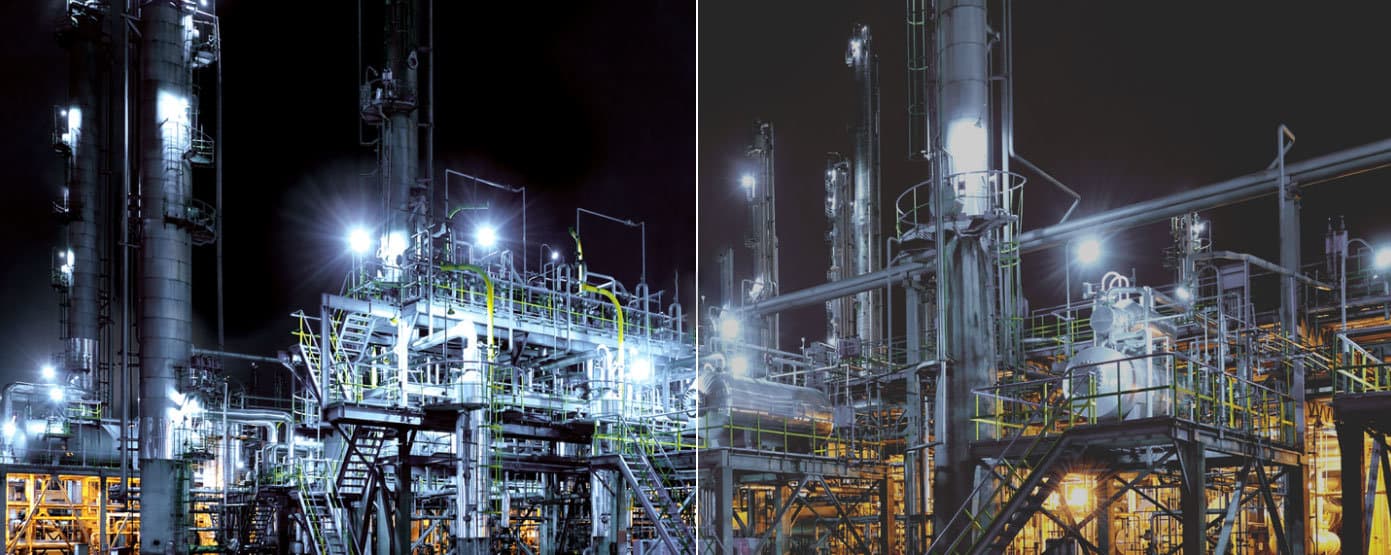 - تباين الألوان ومستويات اللون الأسود: تتفوق شاشات الـ OLED بخاصية تباين الألوان؛ وذلك لأن كل بكسلٍ مستقلٍ في لونه وإضاءته عن باقي البكسلات (كما ذكرنا أعلاه)، أما اللون الأسود، فيظهر بشكلٍ واضحٍ وأقرب للحقيقة في شاشات الـ OLED، حيث يمكن لبكسلات هذه الشاشات أن تصل لدرجة السواد الكاملة (مطفأة تمامًا)؛ مما يجعل المَشاهد والصور الليلية واضحةً وحقيقيةً في نفس الوقت (انظر صورة المقارنة أدناه).