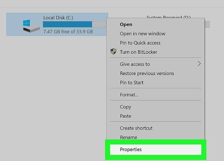 ستظهر لك قائمة من الخيارات الخاصة بالقرص C وهو القرص الرئيسي، حيث يُثبت نظام ويندوز عليه.