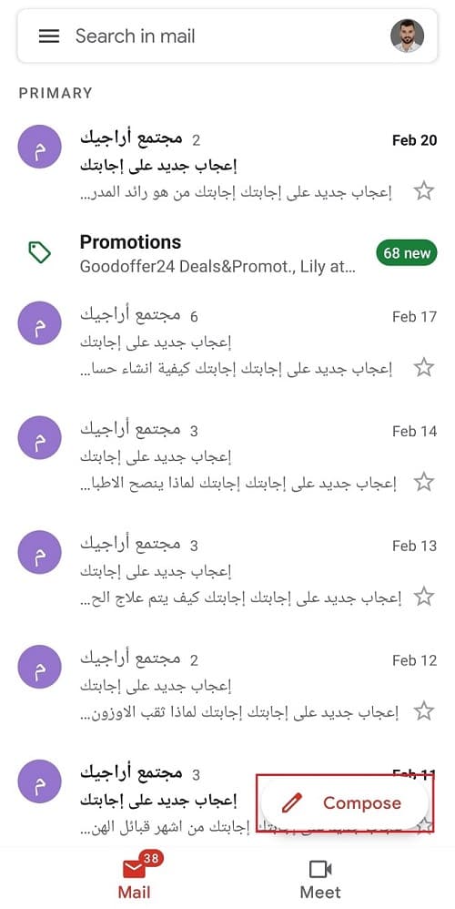 - اضغط على إنشاء رسالة (Compose).