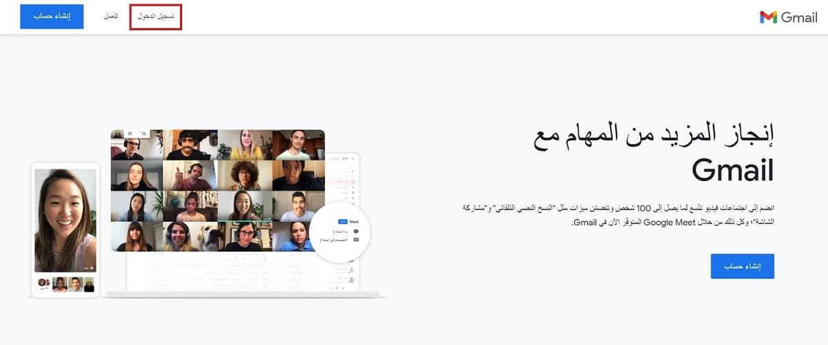 توجّه إلى الموقع الرسمي لجيميل، (يمكنك الضغط على هذا الرابط لتوجيهك إلى الموقع).