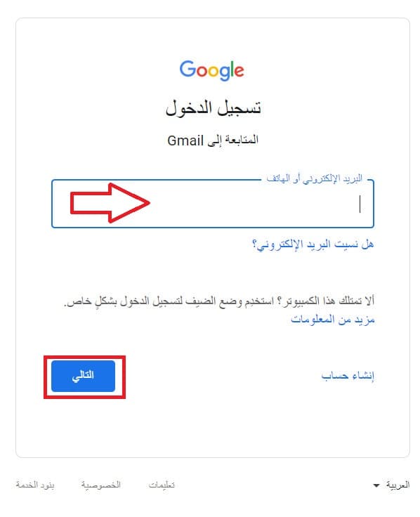 أدخل عنوان البريد الإلكتروني الخاص بك واضغط على التالي.