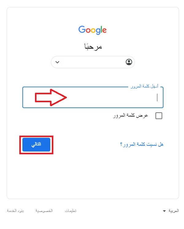 أدخل كلمة المرور الخاصة بحسابك واضغط على التالي.