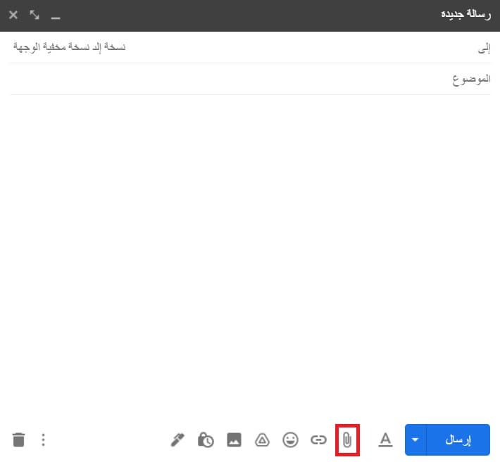 اضغط على زر إرفاق ملف الموجود في زاوية الرسالة الجديدة.