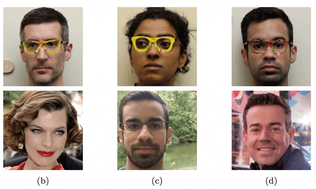 توصلت مجموعة من الباحثين إلى كيفية خداع خوارزمية التعرف على الوجه باستخدام نظارات خاصة من شأنها إحداث تشوهات للبيانات المرسلة الى المستشعر وبالتالي تغيير النتيجة تمامًا، كما يظهر في الصور أدناه تمكن هؤلاء الباحثون من خداع التكنولوجيا وتم تعريفهم على أنهم أفراد آخرون لا يشبهونهم إطلاقًا، حتى في الحالات التي تبدو معقدة نوعًا ما، يُمكن بسهولة خداع الجهاز باستخدام أساليب غير معروفة للشخص العادي.