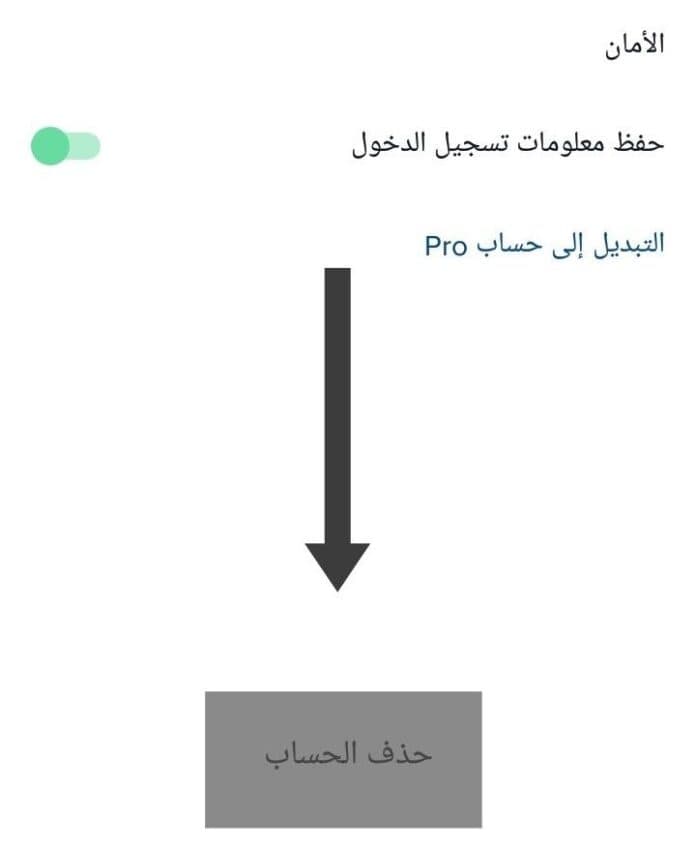 3- اذهب لأسفل القائمة ستجد خيار “حذف حسابي”