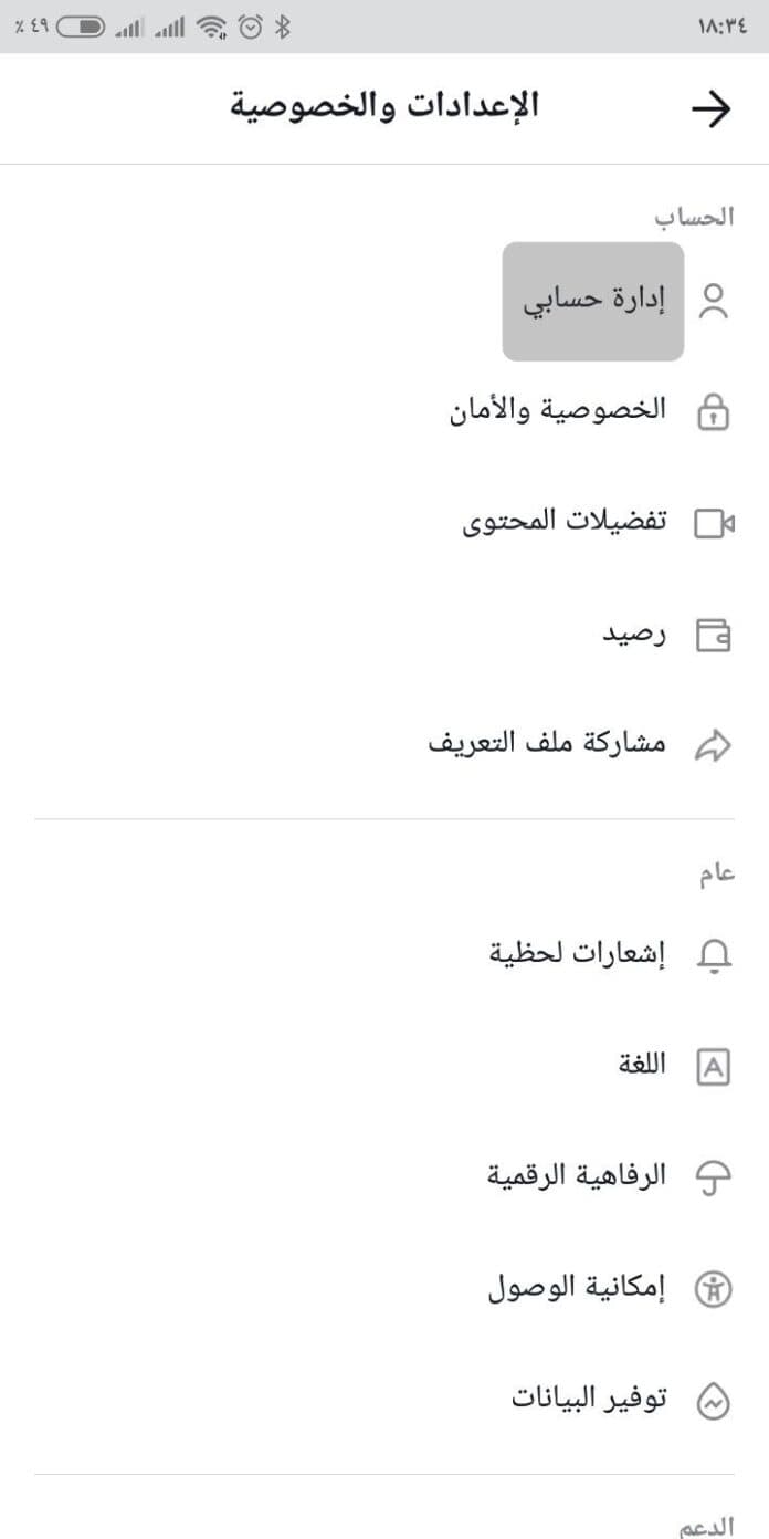 3- ستفتح أمامك صفحة الإعدادات والخصوصية/ اختر إدارة حسابي